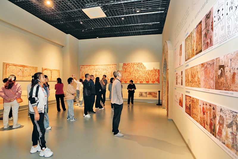 眾多游客在怡然見晉中:《晉中·春節(jié)記憶》攝影展展區觀展